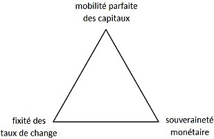 Pour commencer, il faut rappeler l’incontournable trilemne (triangle d’incompatibilité) de Robert Mundell (« The Monetary Dynamnics of International Adjustement under Fixed and Flexible Exchange Rates », Quarterly Journal of Economics, 1960). Selon ce trilemne, il est impossible d’avoir en même temps une parfaite liberté des circulations des capitaux, l’autonomie de la politique monétaire et des taux de change fixes.
