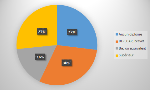 Source : INSEE 2013. NB : le total ne fait pas 100 en raison des 10% d’individus en cours d’études initiales.