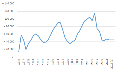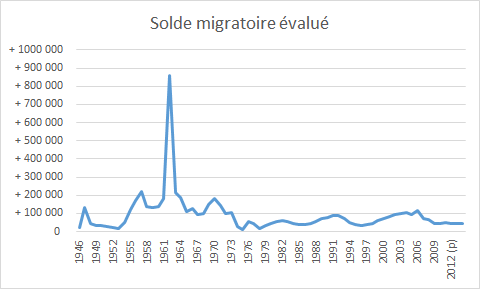Source : INSEE. Nb : le pic en 1962 correspond aux rapatriements des pieds-noirs à la fin de la guerre d’Algérie.