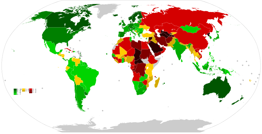 The Economist Intelligence Unit Democracy Index, 2010. Source : Wikipedia.