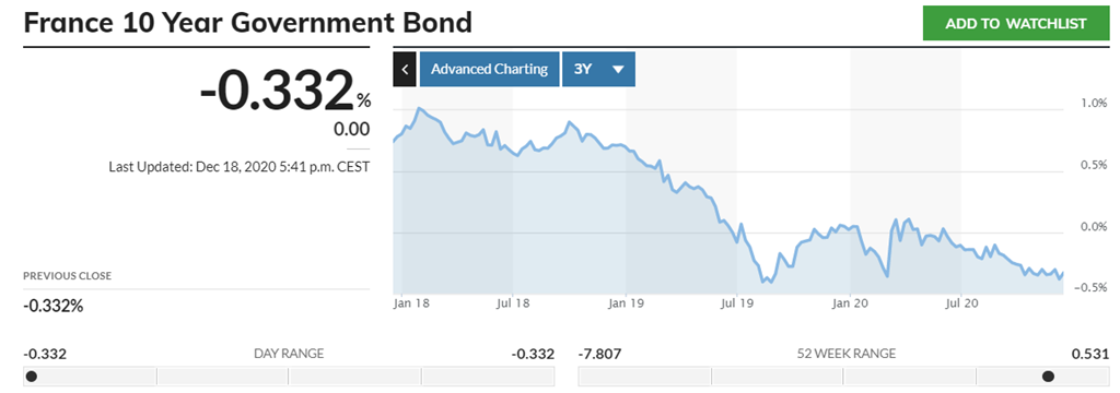 En raison des politiques de QE (achats de titres de la dette), d’une inflation très basse, de l’abondance de liquidités et de règles prudentielles qui obligent certains opérateurs sur les marchés (fonds de pension, investisseurs institutionnels, banques) à détenir un certain volume de dette publique, une situation exceptionnelle se produit : des prêteurs sont prêts à payer pour placer leur argent…