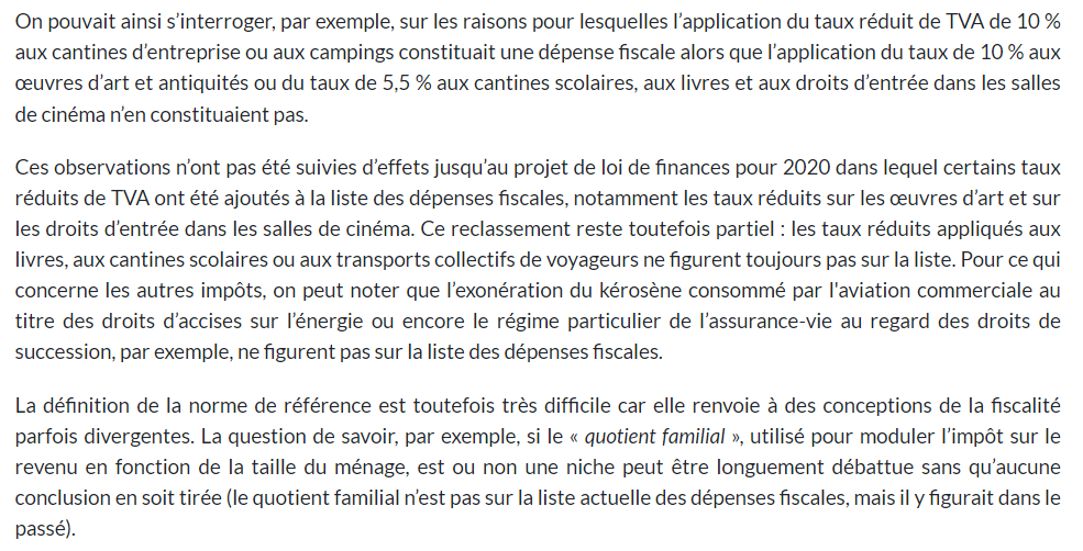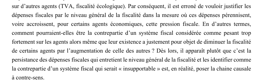 D’abord, dans votre conclusion, vous insistez sur l’importance de « l’effet final de la dépense sur l’économie, plus que son bénéficiaire initial ou administratif ». Je suis parfaitement d’accord avec le peu d’importance que représente le bénéficiaire initial des dépenses fiscales, je le suis moins quant à l’importance du bénéficiaire final que vous proposez : l’économie.