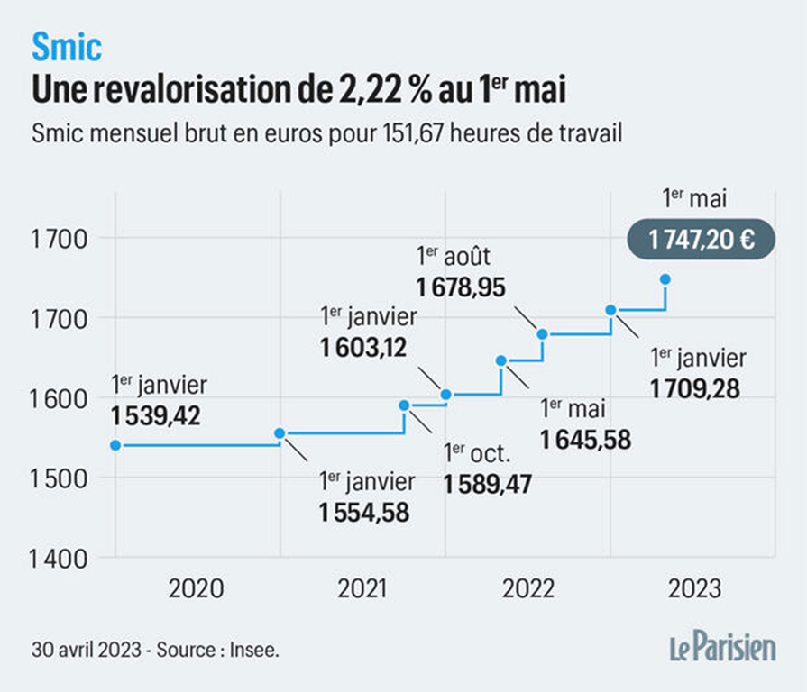 L’effet sera aggravé si l’on intègre l’autre proposition du Nouveau Front Populaire qui est l’indexation automatique de tous les salaires sur l’inflation. Actuellement, seul le smic est automatiquement augmenté en fonction de l’inflation, au minimum chaque année mais davantage lorsqu’elle dépasse 2%, ce qui fait que depuis 2020 il a été augmenté pas moins de six fois.