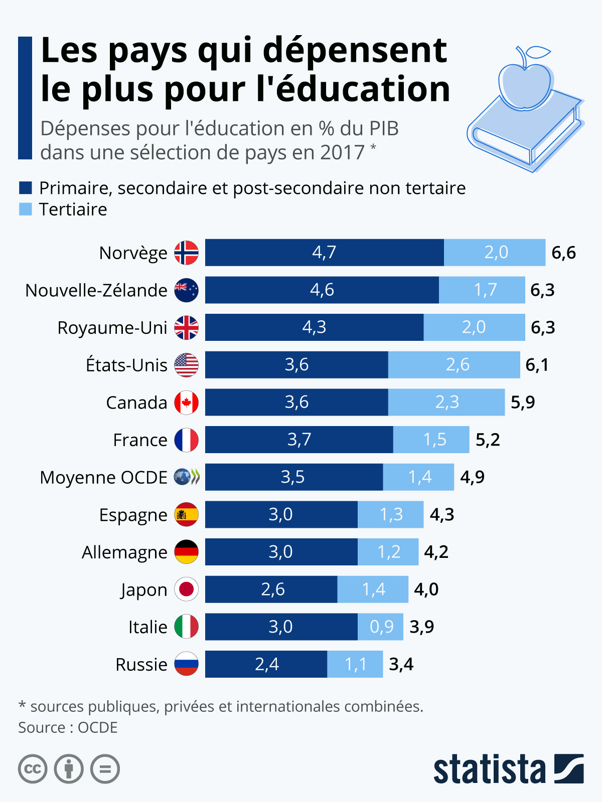 Prenons un graphique comparant basiquement les dépenses d’éducation dans différents pays de l’OCDE en pourcentage du PIB.